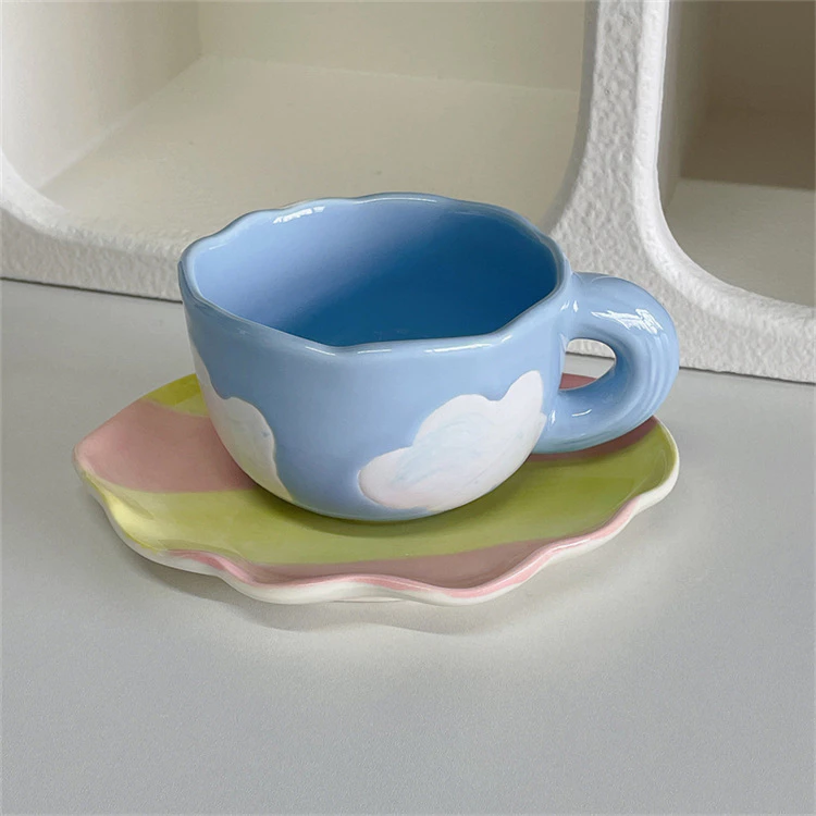 Set 𝗥𝗮𝗶𝗻𝗯𝗼𝘄 blue sky แก้วเซรามิค + จานรองแก้ว